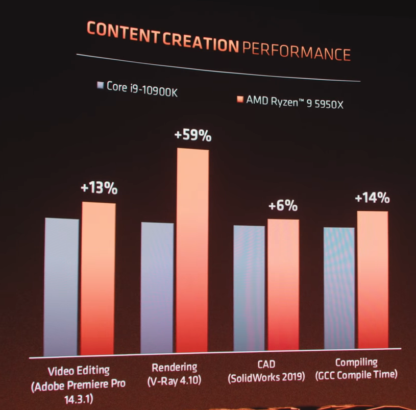 인텔 i9 10900K vs 5900X 성능 비교 - AMD 자체발표